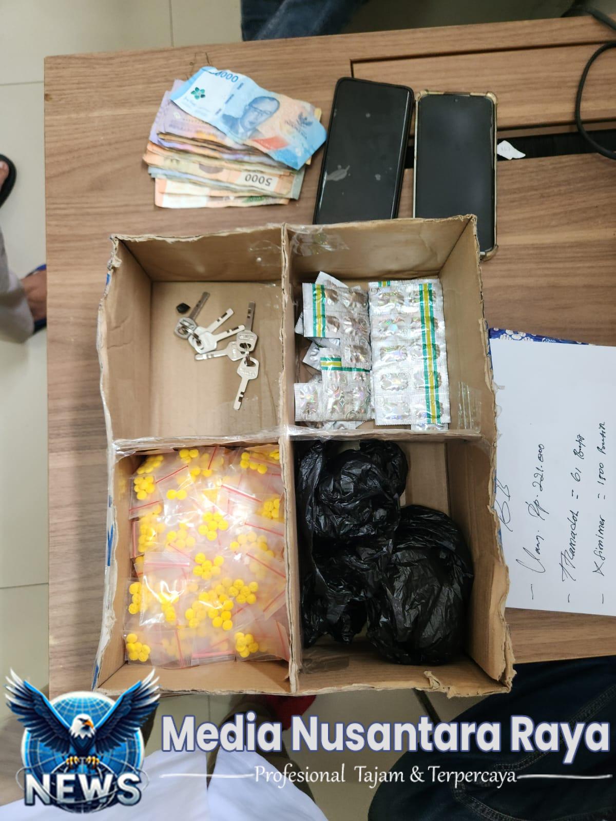 Dari lokasi kejadian, polisi mengamankan sejumlah barang bukti berupa uang tunai sebesar Rp221.000 hasil penjualan, sebanyak 1.500 butir obat Hexymer (Eximer), 60 butir obat Tramadol, serta satu unit handphone merek Oppo.