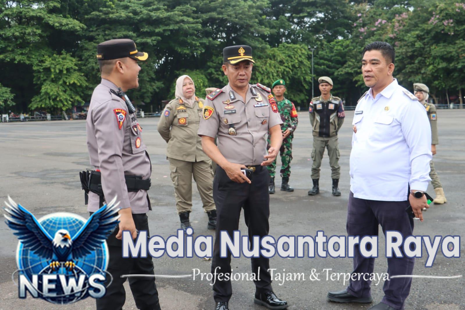 Lahat // medianusantararaya.id /  Kapolres Lahat AKBP Novi Edyanto SIK.MIK, yang diwakili Waka Polres Kompol Liswan Nurhapis SH, dan didampingi Kabag Ops Kompol Toni Arman SH.MSi memimpin Apel gabungan dalam rangka pengamanan kunjungan kerja Mentri Desa, Pembangunan Daerah Tertinggal, dan Transmigrasi (Mendes) serta Badan Narkotika Nasional (BNN) Pusat dilaksanakan di Kabupaten Lahat. Apel ini diikuti oleh personel gabungan dari TNI, Polri, Satpol PP, Dinas Perhubungan, serta unsur terkait lainnya. Kegiatan tersebut bertujuan untuk memastikan kesiapan seluruh personel dalam mendukung kelancaran dan keamanan agenda kunjungan kerja pejabat pusat di wilayah Kabupaten Lahat.