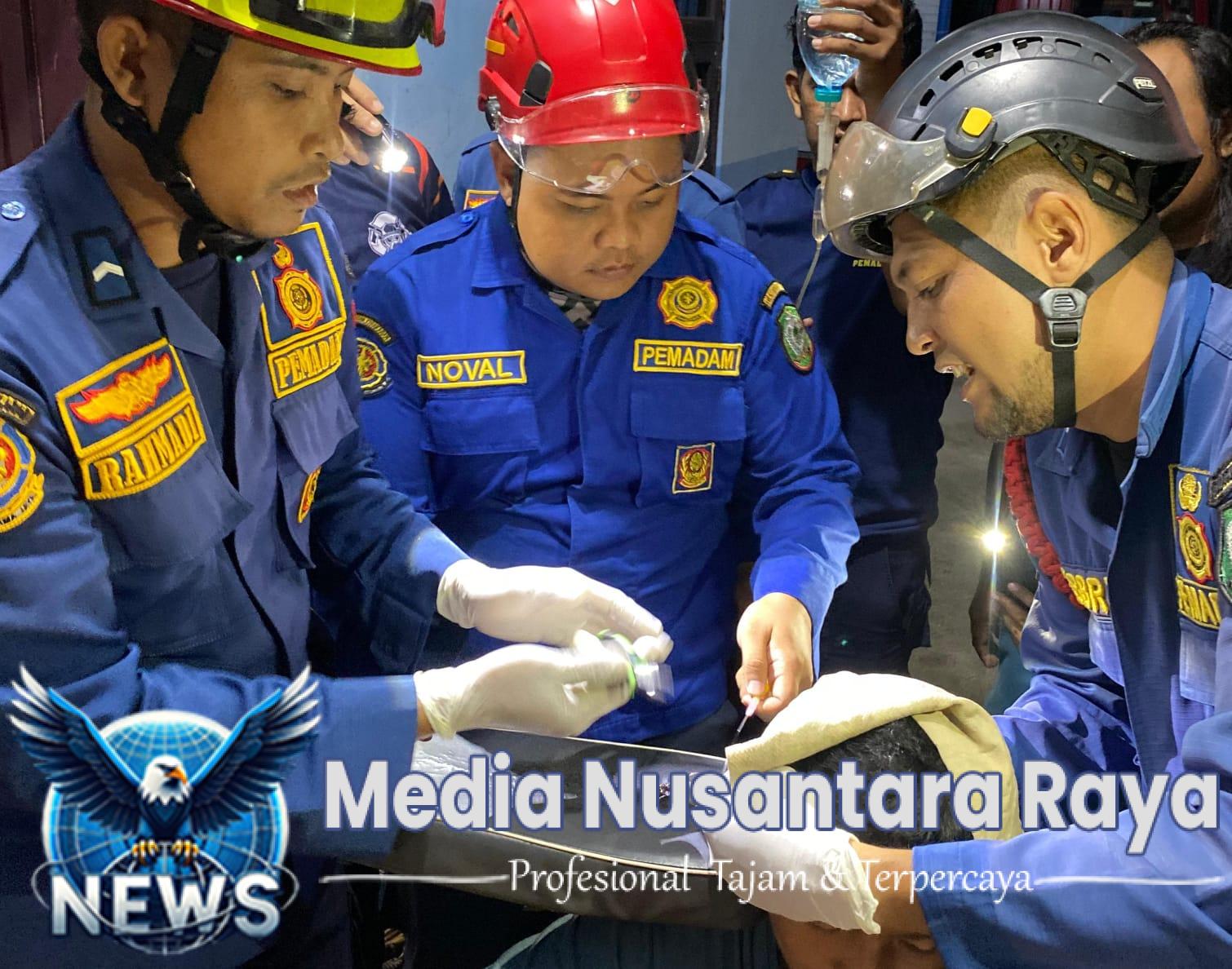 Kepala Regu 3, Rahmadi, bersama tim rescue yang terdiri dari Markus Marcellino Rambang, Noval Dwi Priyanto, Gusti Abdul Fattah, dan M. Rizaldy, melaksanakan penanganan.