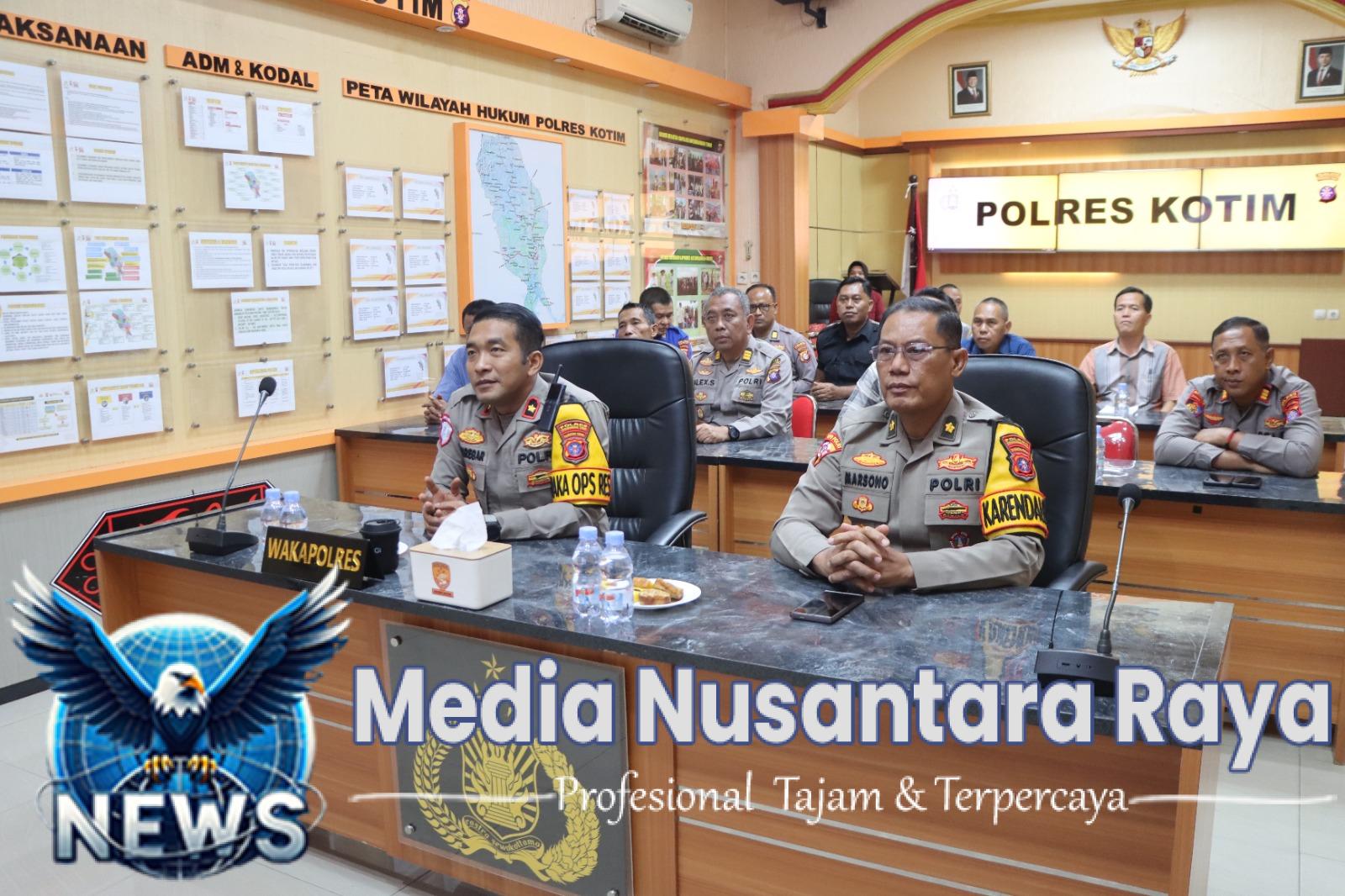 Kegiatan Vicon tersebut dilaksanakan di Aula Lobby Polres Kotim dan dipimpin oleh Wakapolres Kotim Kompol Christian Maruli Tua Siregar, S.I.K., M.M., mewakili Kapolres Kotim AKBP Resky Maulana Zulkarnain, S.H., S.I.K., M.H. Kegiatan ini turut dihadiri Kabag Ops Polres Kotim Kompol Marsono, S.H., M.M., serta diikuti para Pejabat Utama (PJU) Polres Kotim.