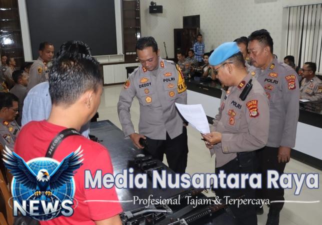 Lampung Utara // mediasuaraindonesia.id /  Kapolres Lampung Utara AKBP Deddy Kurniawan, S.H., S.I.K., M.M., M.Si. melaksanakan pengecekan senjata api (senpi) milik Dinas, kegiatan tersebut berlangsung di Aula Rekonfu Polres setempat. Jumat (6/3/2026).