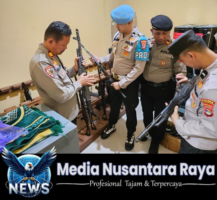 Tulang Bawang Barat // media Nusantara Raya.com /  Sipropam Polres Tubaba Polda Lampung laksanakan pengecekan dan pemeriksaan terhadap senjata api (senpi) dinas Inventaris dan Gudang Logistik Polres Tubaba di halaman Apel Mapolres Tubaba.