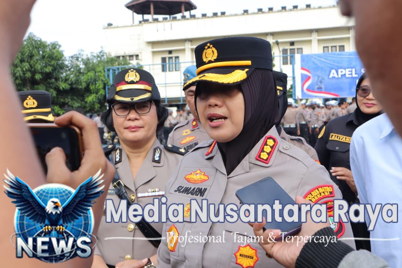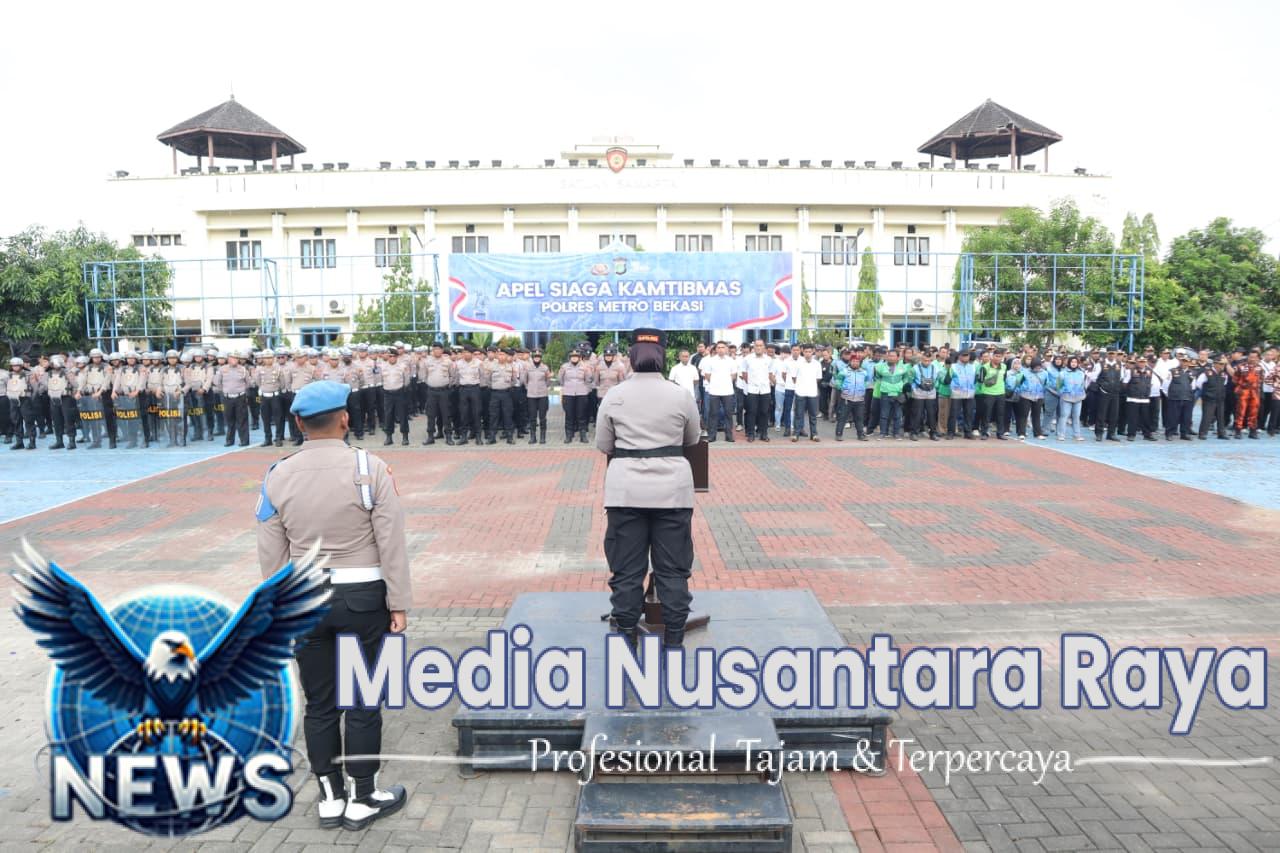 BEKASI//NUSANTARARAYA.COM//- Dalam rangka mengantisipasi potensi gangguan keamanan aksi unjuk rasa di tahun 2026, Polres Metro Bekasi menggelar Apel Siaga Kamtibmas pada Kamis pagi, 9 April 2026, bertempat di Lapangan Apel Mapolres Metro Bekasi. Kegiatan ini dipimpin langsung oleh Kapolres Metro Bekasi Kombes Pol Sumarni, S.I.K., S.H., M.H., serta dihadiri jajaran pejabat utama, para perwira pengendali, dan ratusan personel gabungan yang disiapkan untuk pengamanan wilayah hukum Polres Metro Bekasi.
