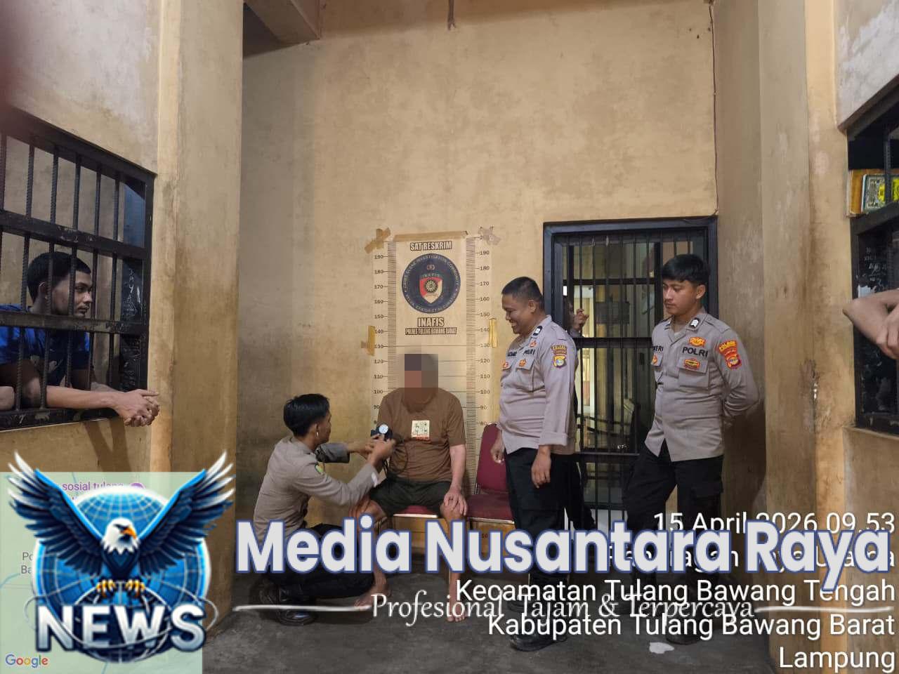 TULANG BAWANG BARAT // NUSANTARARAYA.COM / Seksi Kedokteran Kepolisian dan Kesehatan (Sie Dokkes) Polres Tulang Bawang Barat, Polda Lampung melaksanakan pengecekan dan pemeriksaan kesehatan para tahanan di rumah tahanan Mapolres Tubaba sekaligus Pemberian obat tahanan yang sakit, Rabu (15/04/2026) pagi