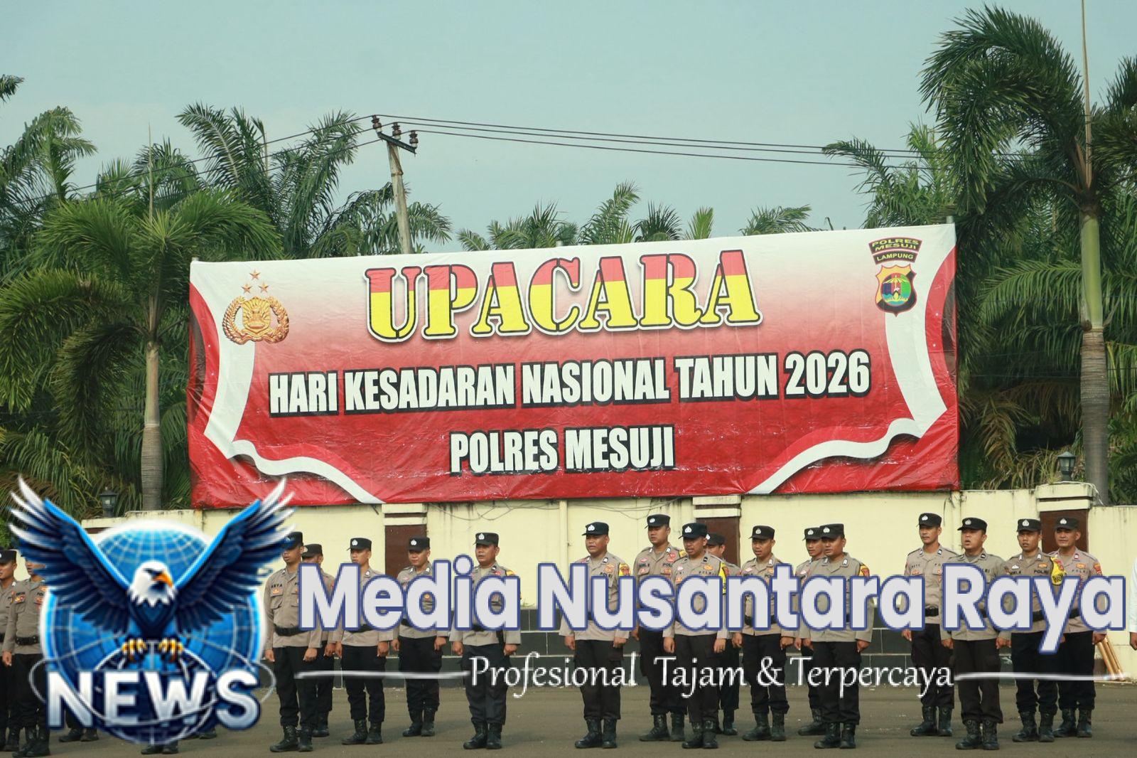 MESUJI // NUSANTARARAYA.COM / jajaran Polres Mesuji Polda Lampung melaksanakan upacara hari kesadaran nasional tahun 2026, upacara dilaksanakan di lapangan apel Mapolres setempat.