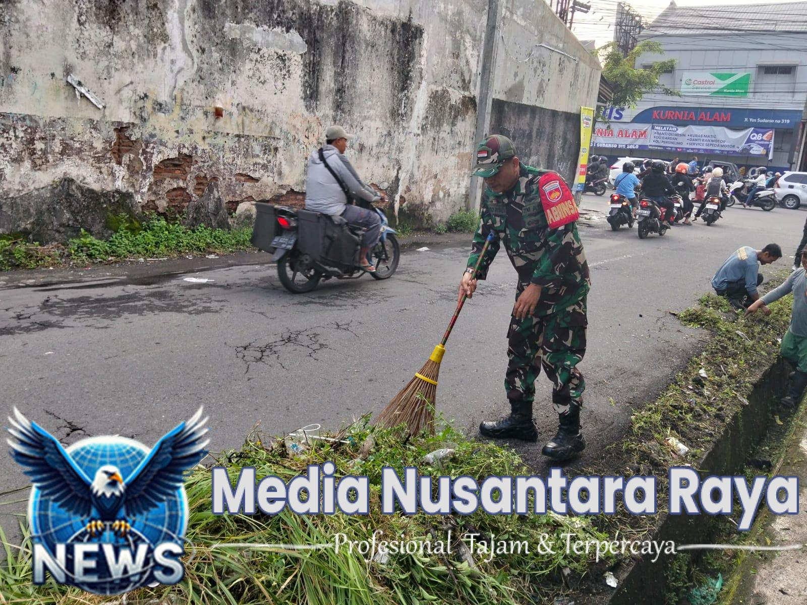 SURAKARTA // NUSANTARARAYA.COM / Pukul 06.30 Wib Selaku Babinsa Sebagai upaya menjaga kebersihan dan kelestarian lingkungan, Serda Djoko Riyadi Babinsa Serengan Koramil 03/Serengan Kodim 0735 Surakarta bersama Bhabinkamtibmas aparat Kelurahan dan Linmas serta warga setempat,