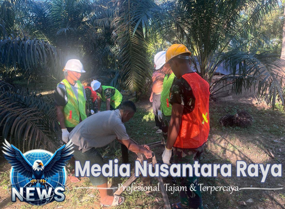 Memasuki tahap penganyaman besi sebagai rangka utama sebelum proses pengecoran, aktivitas di lokasi proyek tampak semakin dinamis dengan keterlibatan aktif personel TNI bersama masyarakat, Minggu (19/04/2026).