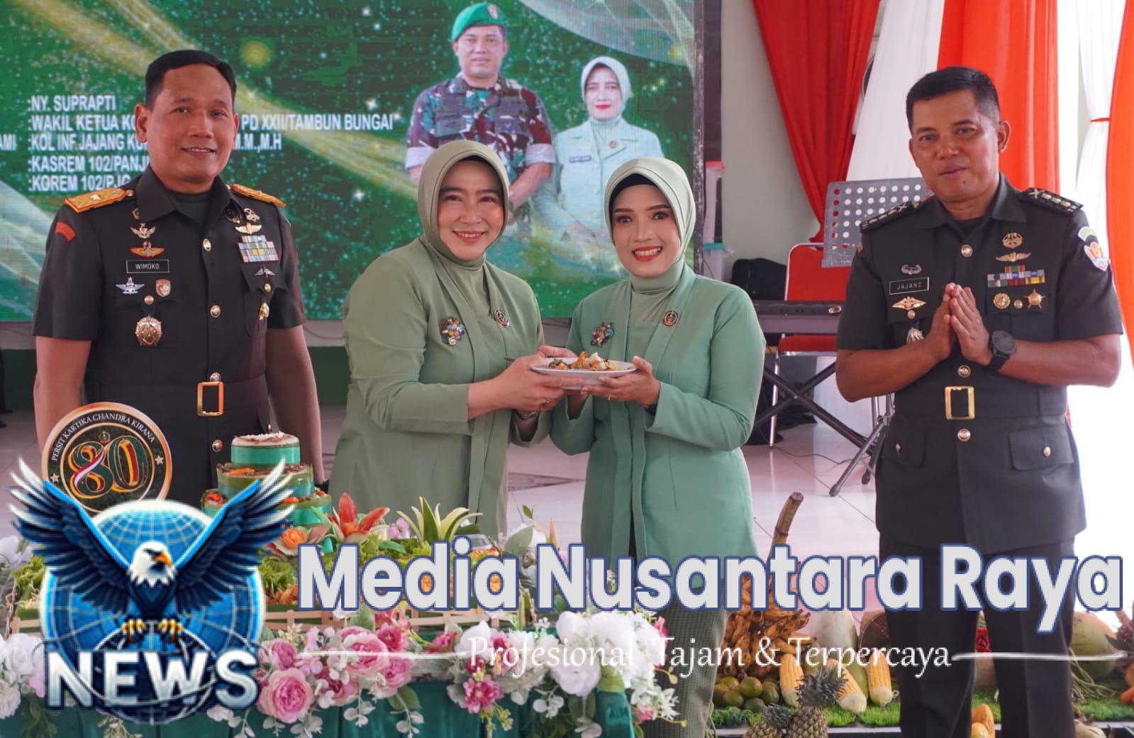 KOTIM, MEDIA NUSANTARA RAYA.COM – Komandan Kodim 1015/Sampit, Letkol Inf Dwi Candra Setyawan bersama Ketua Persit KCK Cabang XLI Dim 1015/Sampit, Ny. Anika Dwi Candra, menghadiri acara syukuran Hari Ulang Tahun (HUT) ke-80 Persit Kartika Chandra Kirana (KCK), yang digelar di Aula Kehormatan Prajurit Makorem 102/Pjg, Jumat (24/04/2026).