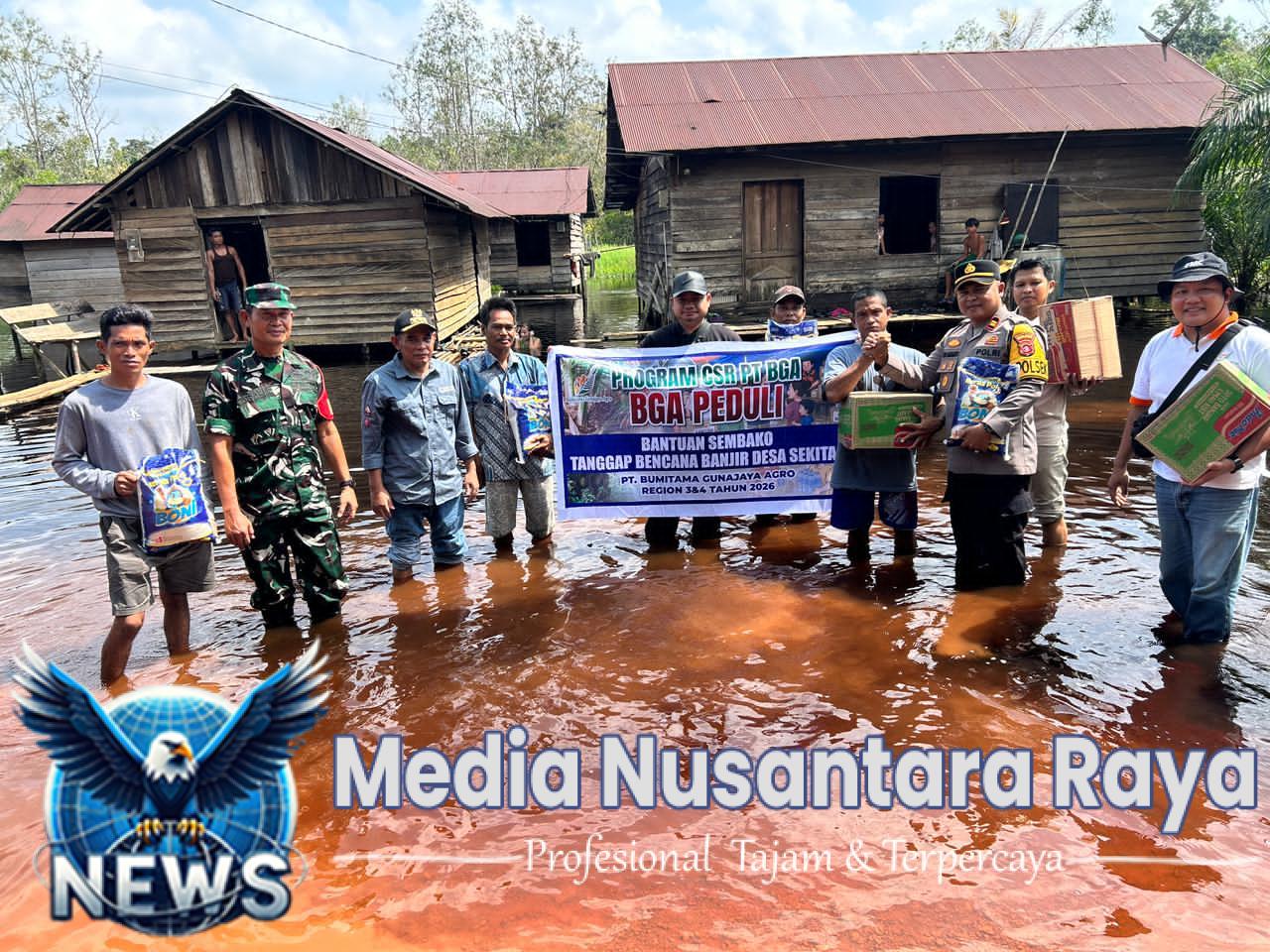KOTIM, MEDIA NUSANTARA RAYA.COM – Polsek Cempaga Hulu Polres Kotawaringin Timur (Kotim) bersama Forum Koordinasi Pimpinan Kecamatan (Forkopimcam) Cempaga Hulu menyalurkan bantuan Corporate Social Responsibility (CSR) dari PT BGA Grup kepada korban banjir di Desa Sei Ubar Mandiri, Kecamatan Cempaga Hulu, Kabupaten Kotim, Sabtu siang (25/04/2026).
