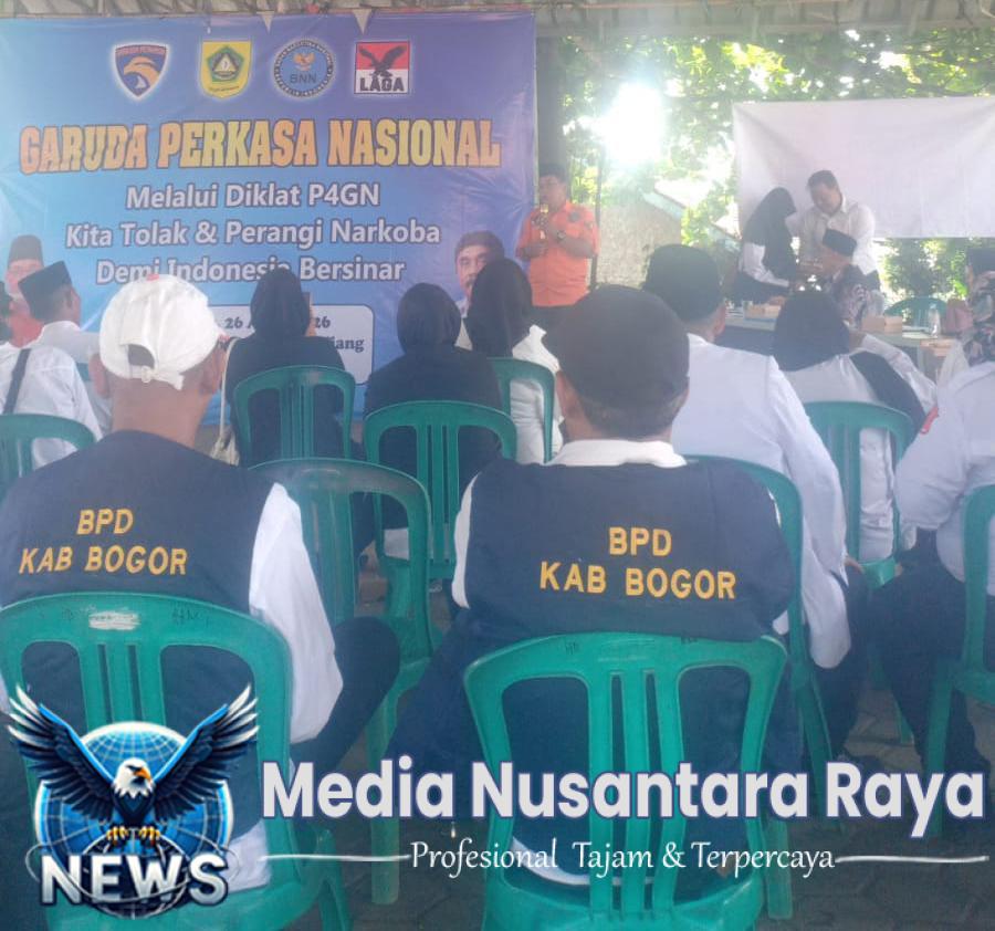 LEUWILIANG //MEDIANUSANTARARAYA.COM//26 April 2026 – Garuda Perkasa Nasional (GPN) menggelar kegiatan Diklat Pencegahan dan Pemberantasan Penyalahgunaan dan Peredaran Gelap Narkoba (P4GN) yang berlangsung meriah di Gedung Serbaguna Leuwiliang, Kabupaten Bogor, pada hari Minggu, 26 April 2026. Kegiatan ini menjadi bukti nyata komitmen organisasi dalam mendukung program pemerintah menciptakan generasi dan lingkungan yang bersih dari bahaya narkotika.